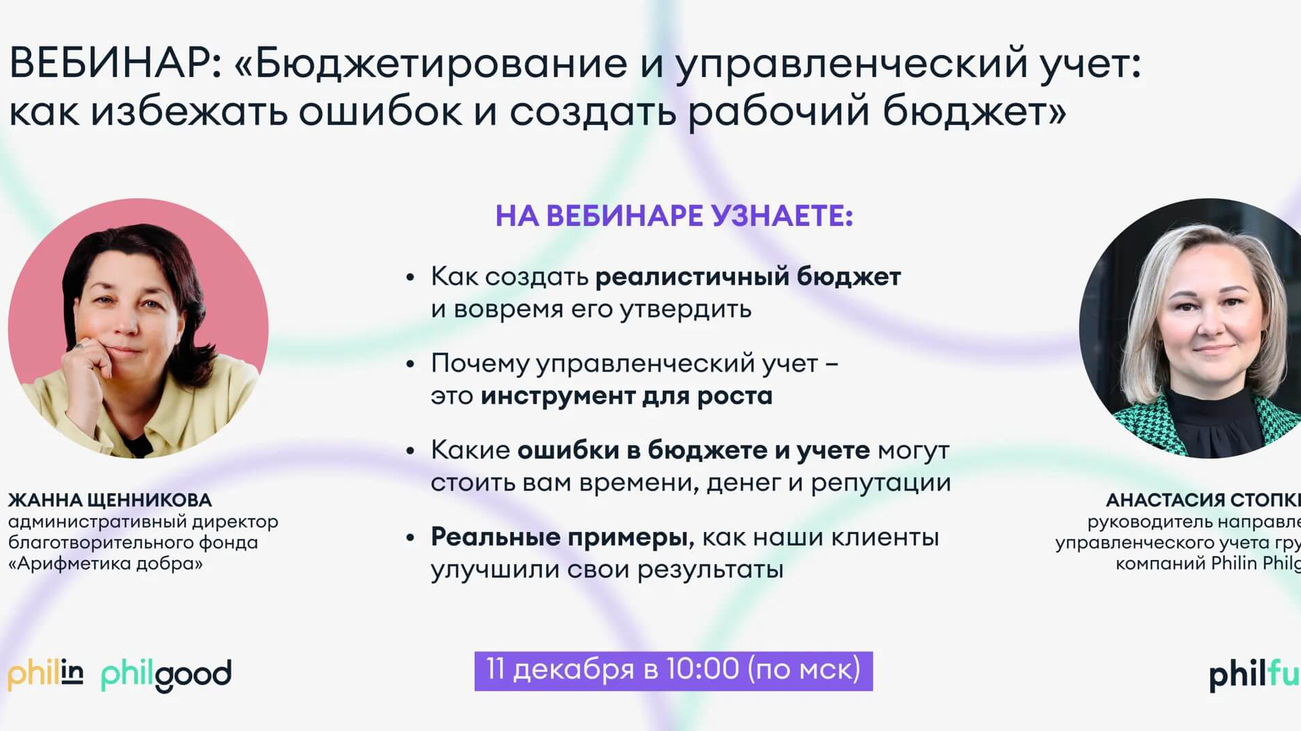 Предоставляем и помогаем получить софинансирование НКО на услуги группы компаний Philin Philgood: совместно с организацией участвуем в написании грантовых заявок, проводим конкурсный отбор на финансирование услуг по комплексному сопровождению.